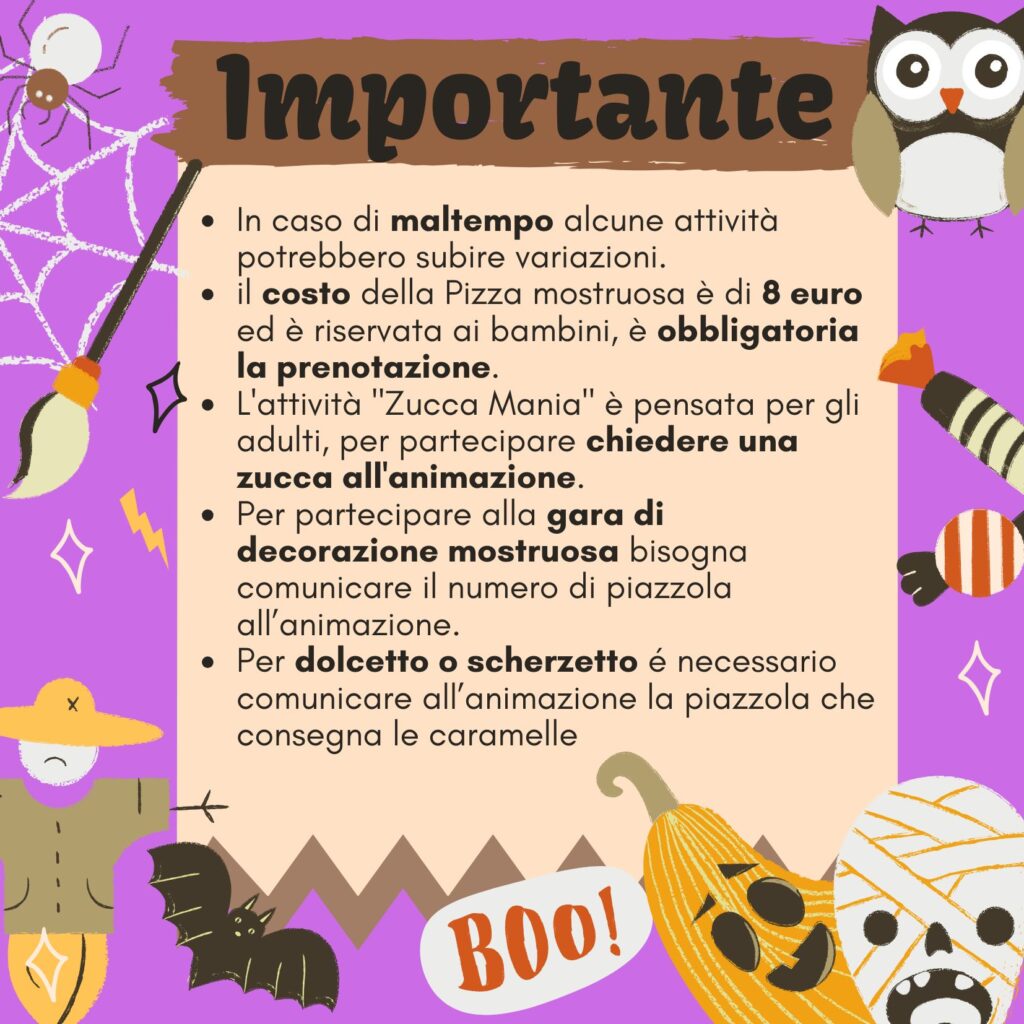Como todos los años, habrá muchísimas actividades: Monster dance, paseo monstruoso, historias alrededor del fuego, manía de calabazas, desfile macabro, Dulce o truco, merienda en compañía y muchos otros eventos.