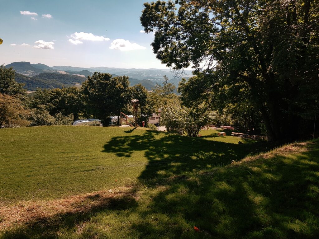 Nuestras parcelas tienen una superficie de 20/25 metros cuadrados, cuentan con césped bien cuidado, una vista espectacular al valle con la majestuosa piedra de Bismantova en primer plano y el valle del río Secchia como telón de fondo.
